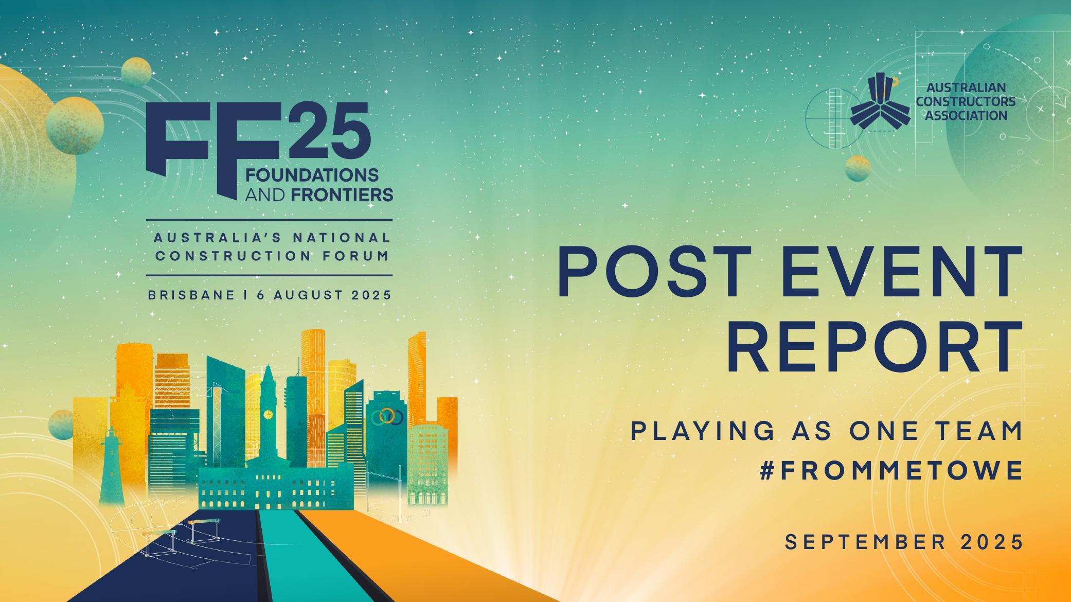 On 6 August, more than 550 leaders from across the construction industry gathered at Nissan Arena, Brisbane, for the second Foundations and Frontiers (FF25), hosted by the Australian Constructors Association. With the theme #FromMeToWe, this year’s forum focused on how we can transform construction from a fragmented industry into one that thrives on collaboration, transparency, and shared success.